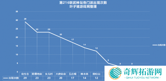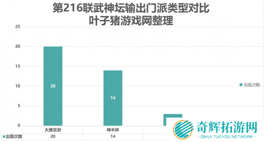 本届武神坛中,主流输出门派出现了4个,其中大唐官府和神木林的出场次数为34,九黎城的出场次数为3,凌波城出场次数为1。不过,钓鱼岛在本届武神坛拿出了“万寿五庄”打法,整体效果还算不错,值得大家参考。