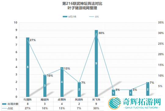 本届武神坛中,大家更偏向于以速度为主的阵法。其中,龙飞阵出场9次,鸟翔阵出场8次,遥遥领先其他阵法。这也表明,本届武神坛中,大家更加重视阵法带来的速度加成。