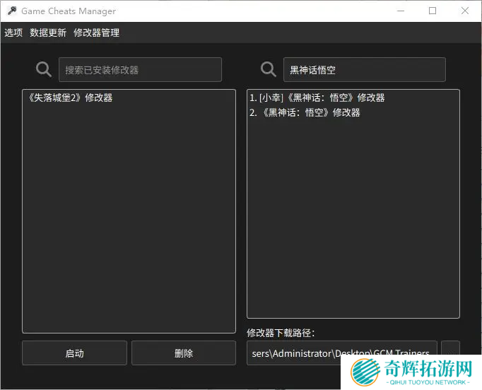 在主界面右上角的搜索框输入“黑神话”或“悟空”,点击搜索,就会出现相关的修改器列表。