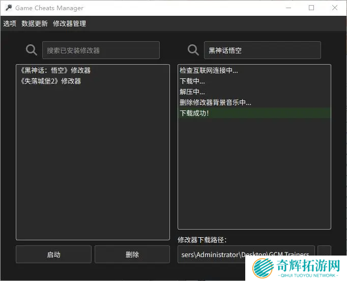 如果你想看看文件下到哪了,可以点左上角的“选项”>“打开修改器下载路径”,会自动跳转到对应的文件夹目录。