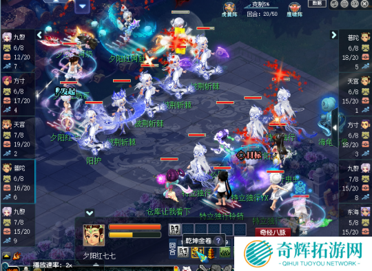 切入战斗,及时行乐鹰阵212对上了正义之师的虎阵四保一,及时行乐意外的使用了女魃墓出战,并且拿到了1、2、5、7速,九黎城快过了正义之师的普陀,优势巨大,第五回合就失魂击杀了正义之师的九黎并触发囚笼状态,每回合都会给其附带随机封法的封印。