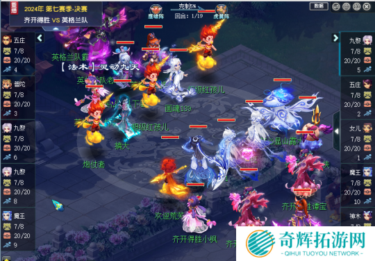 英格兰队也没有因此放弃,隐身宝宝拉起输出,也反手秒倒了齐开得胜的女儿九黎和魔王,但是英格兰队还有拉人药的宝宝被尽数秒飞,无法拉起人物,最终19回合,英格兰队饮恨败北,齐开得胜拿下2024年群雄逐鹿第七赛季天科组冠军。