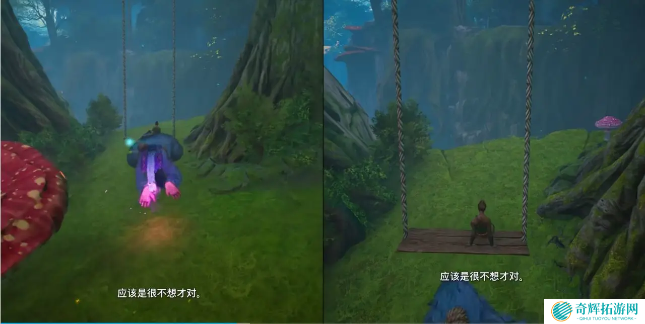 2、让佐伊坐上秋千,米欧则变成猴子推秋千,即可触发成就。
