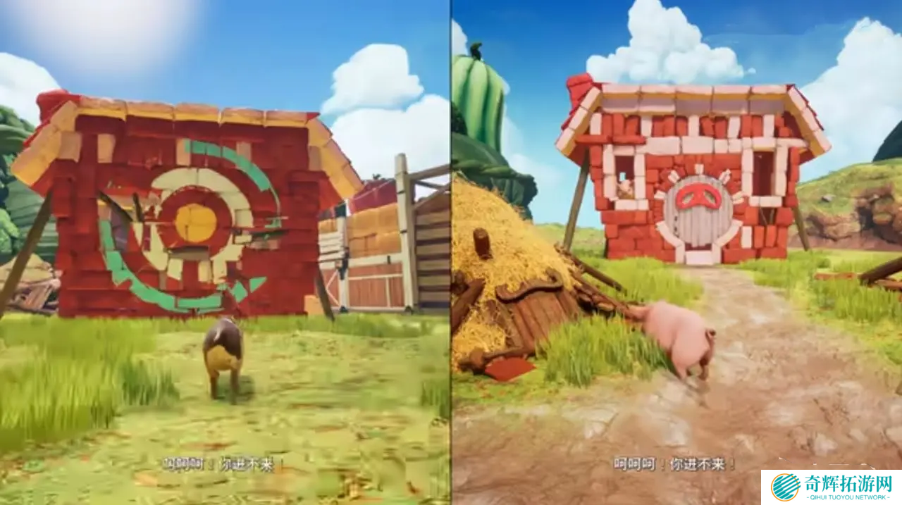 1、在一个砖房前,你会遇到一只嚣张的小猪,它会挑衅你,说自己的房子坚不可摧。