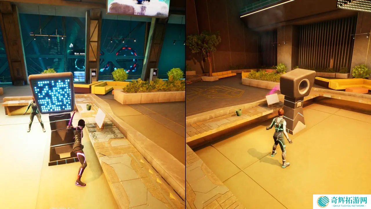 当米欧变身为平台,帮助佐伊解开磁力谜题后,继续前行,会看到一个巨大的*处理装置。