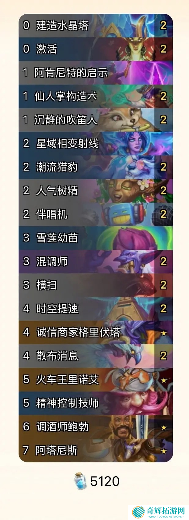 卡组中一共有5张星灵牌,通常一张时空提速就能让你过完所有星灵牌。