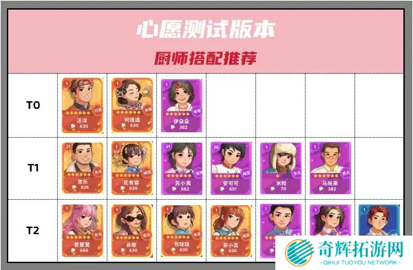 君茸茸、云歌、包珑珑、茶小蕊、江月白、谷子、燕麦>>>这些厨师的成长性不错,但前期作用不如 T0、T1 级厨师明显,建议作为后备选择。