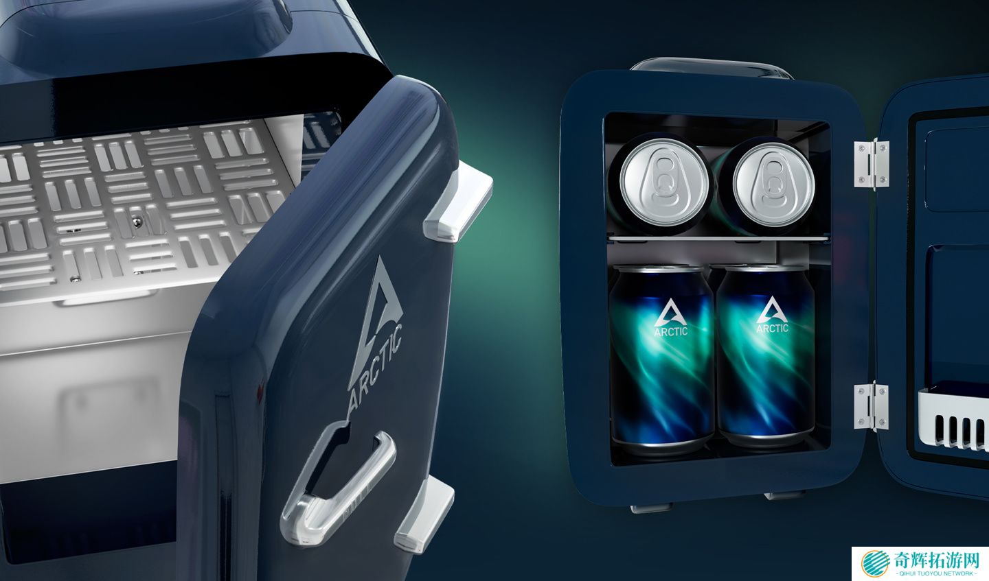 ARCTICFridge 三维 275×195×290 (mm),能容纳 6 个 330ml 易拉罐或 4 个 500ml 罐,其中部的可拆卸隔板可灵活满足饮料、小吃乃至化妆品的存放需求。