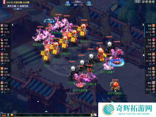 比赛第22回合,西栅老街花果山当头打出16442点伤害,将明秀园盘丝洞击杀,这波成功点杀直接导致明秀园“三封”大阵被破。