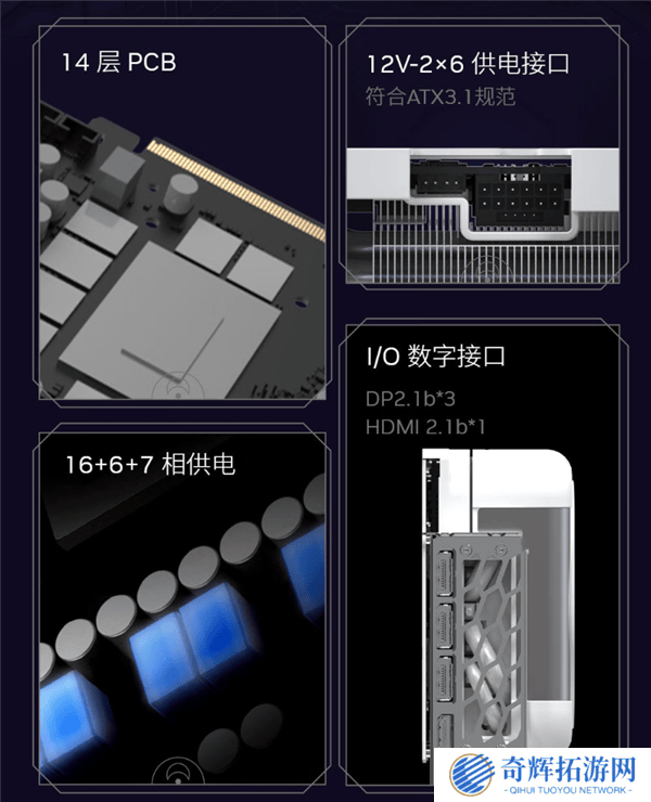 在硬件配置上,RTX 5090D星曜OC同样不容小觑。它采用了14层PCB设计,并配备了16+6+7相供电系统。默认加速频率高达2407MHz,一键超频后更是能达到2452MHz。供电接口为单个12V-2x6,输出接口则包括三个DP 2.1b和一个HDMI 2.1b,满足玩家对高清画质和流畅游戏体验的追求。