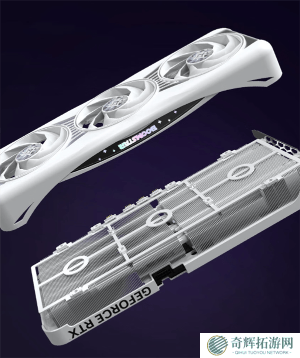 显卡的一大亮点是其一体式磁吸上盖设计。这一设计不仅让显卡看起来更加炫酷,还大大方便了玩家的清理与维护。磁吸上盖通过多个磁点固定,非常牢靠,同时可以与散热器轻松分离。风扇和灯效均采用触电式供电,玩家可以轻松拆卸和更换,实现个性化的DIY定制。