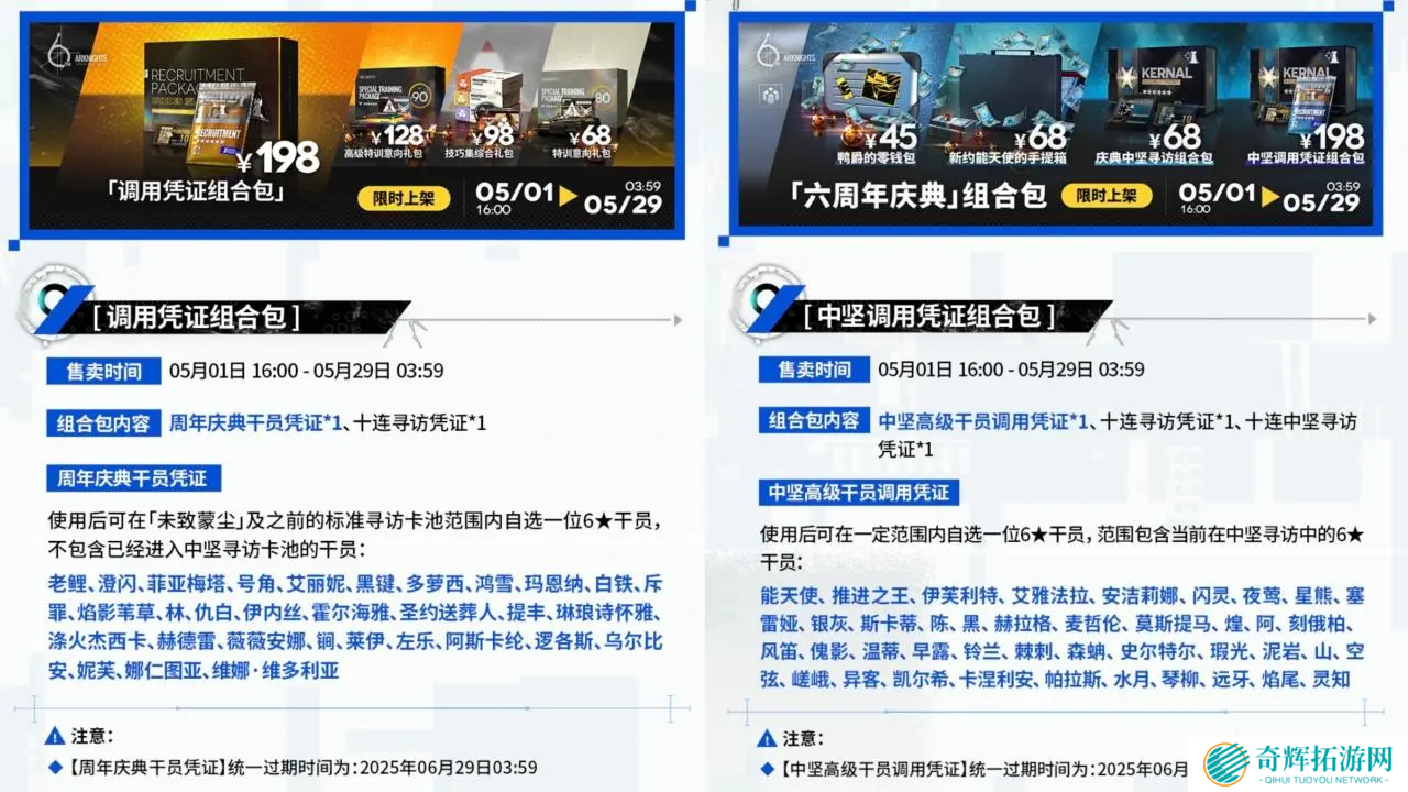 两个礼包里的干员不同!一定要确认自己想要的干员在正确的礼包里,别买错了。