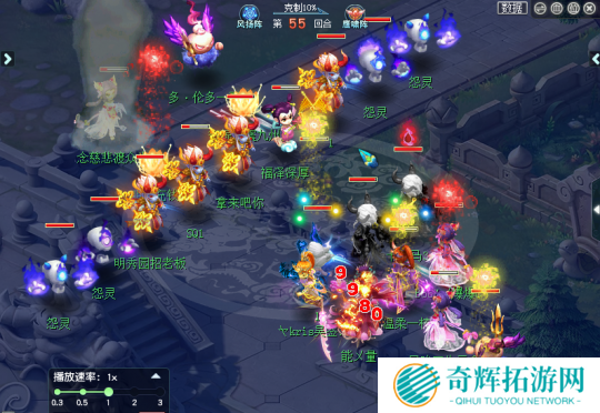 在双方的互相面伤之下,双方的一速均处于俯卧撑的状态,54回合封狼拉出一只谛听,一速盘丝给上战笛后,直接被对手盘丝瞬法秒倒,但是谛听已经出手,虽然伤害不高,但是还是秒倒了猪圈战队的花果、盘丝、五庄三个单位,配合花果山飞机群秒,胜利就在眼前!