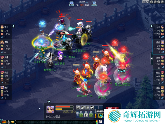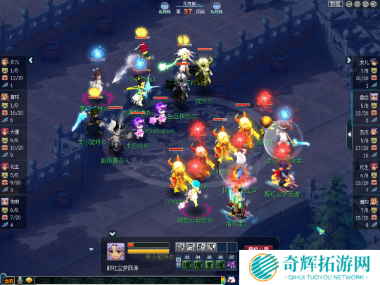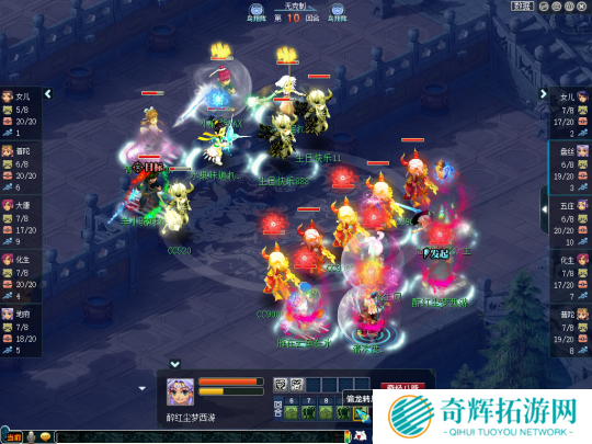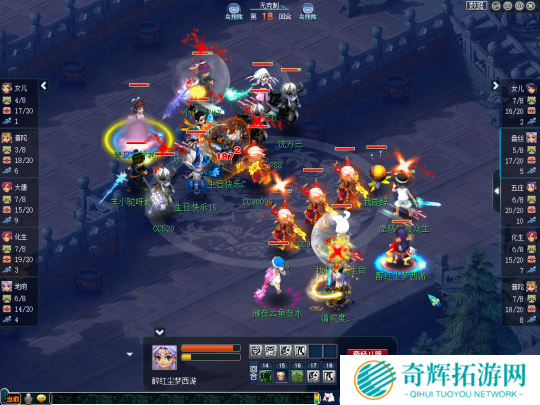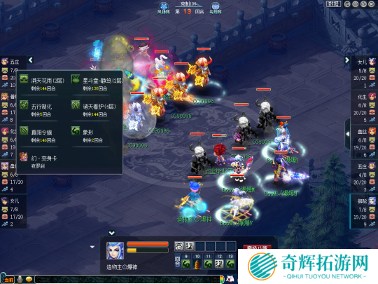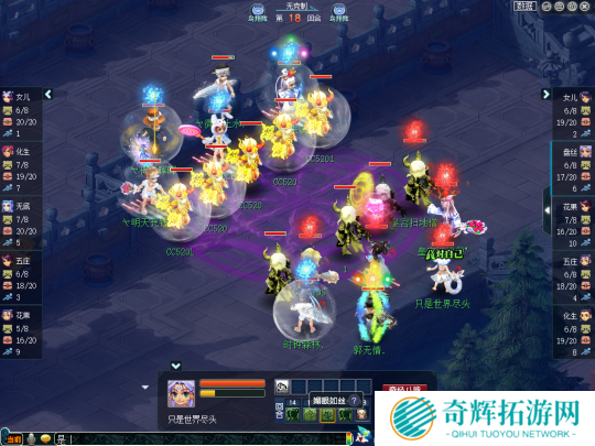 比赛第18回合,生日快乐女儿村、咒师普陀的召唤兽损失已经非常严重,但珍宝阁依然是一副控制回复的打法,盘丝不是放特技就是抽蓝丢瘴气,打得生日快乐苦不堪言。