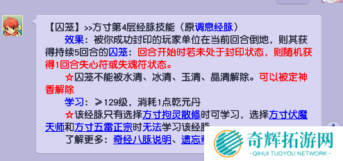 小编点评:方寸的“囚笼”经脉非常克制三攻阵容,因为地府小死亡被水清后会失效,而囚笼封在阻止目标出手的同时还降抗性,只要当回合封中+击倒满足条件就会触发“囚笼”状态,可以说是三攻的噩梦了。