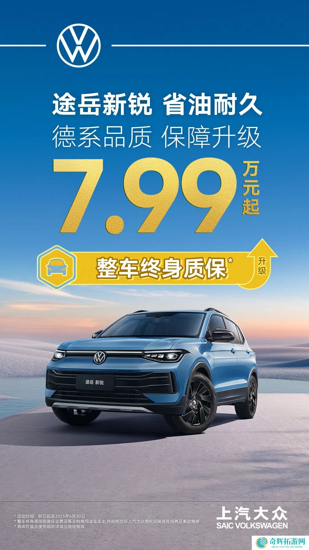 官方海报显示,整车终身质保限首任非营运 / 非特殊用途车车主,并按规定在上汽大众授权经销商处保养及事故维修,完整细节需要咨询经销商。