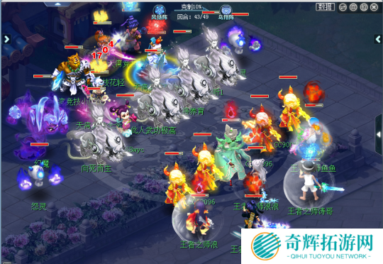 43回合,紫禁城再次赌其DT横扫休息,一下拉出4只谛听。但是王者之师大唐依旧没有横扫。将对手吃死,次回合双尺+咒师砸+大唐巨剑。直接化解了4谛听冲刺。反手双杀了狮驼和五庄
