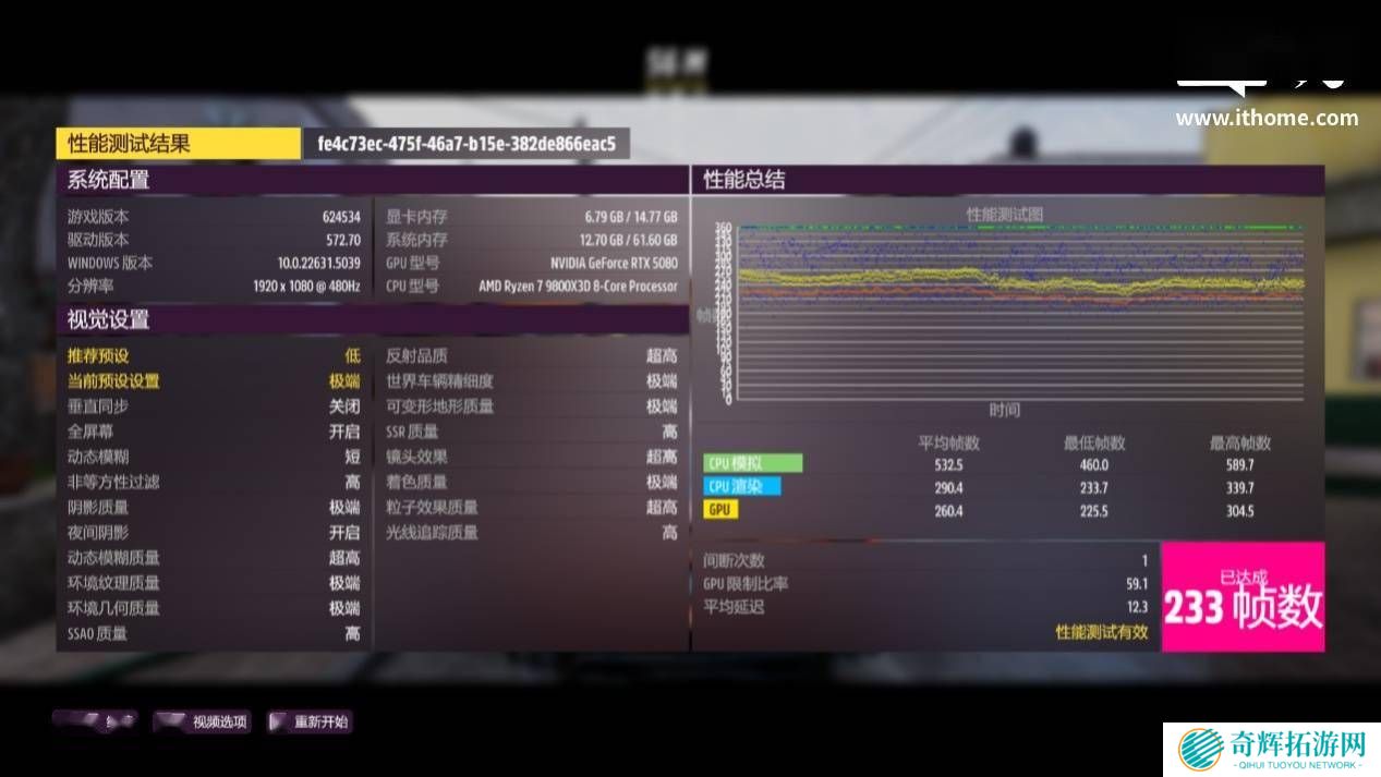 游戏实测方面,我们搭配了RTX 5080显卡,在1080P高/最高画质下测试了多款游戏。在《CS2》中,平均帧数为583帧;在《永劫无间》中,平均帧数为282帧;在《古墓丽影:暗影》中,平均帧数为356帧;在《极限竞速:地平线5》中,平均帧数为233帧;在《赛博朋克:2077》中,平均帧数为215帧;在《黑神话:悟空》中,平均帧数为98帧。这些游戏测试结果表明,这款主板在游戏性能上也表现出色。