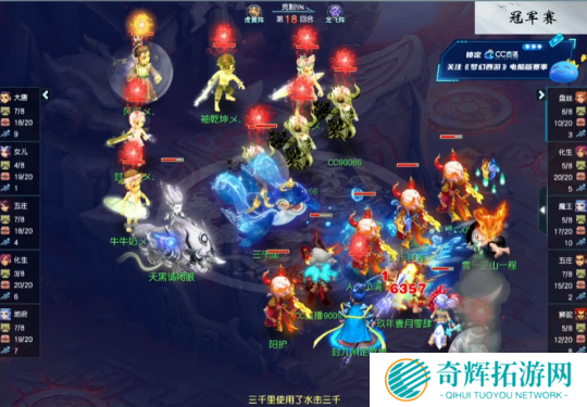 比赛一开场,紫禁城就开启点杀模式。在第一回合点掉狮驼岭后,于比赛第五回合将珍宝阁魔王寨点倒。这两波操作下来,很好的保证了己方善恶召唤兽生存。