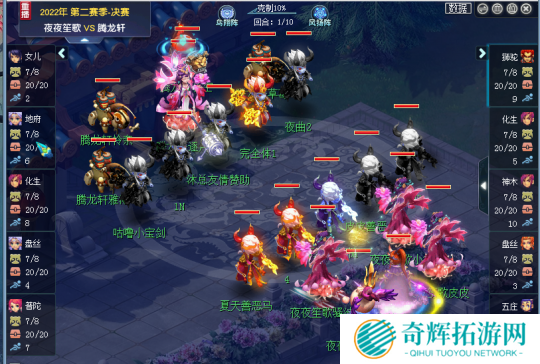 同时第五回合狮驼岭叠起2层满天,次回合直接开启鹰击+风卷,同时禁疗残血套化生寺,腾龙轩战队血线完全无法回复,仅仅10个回合就被夜夜笙歌战队清场。