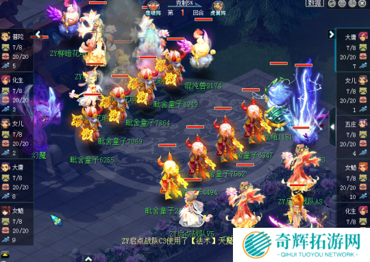 观战方启点战队阵容:女儿、五庄、化生、三扫大唐、女魃 虎阵双辅