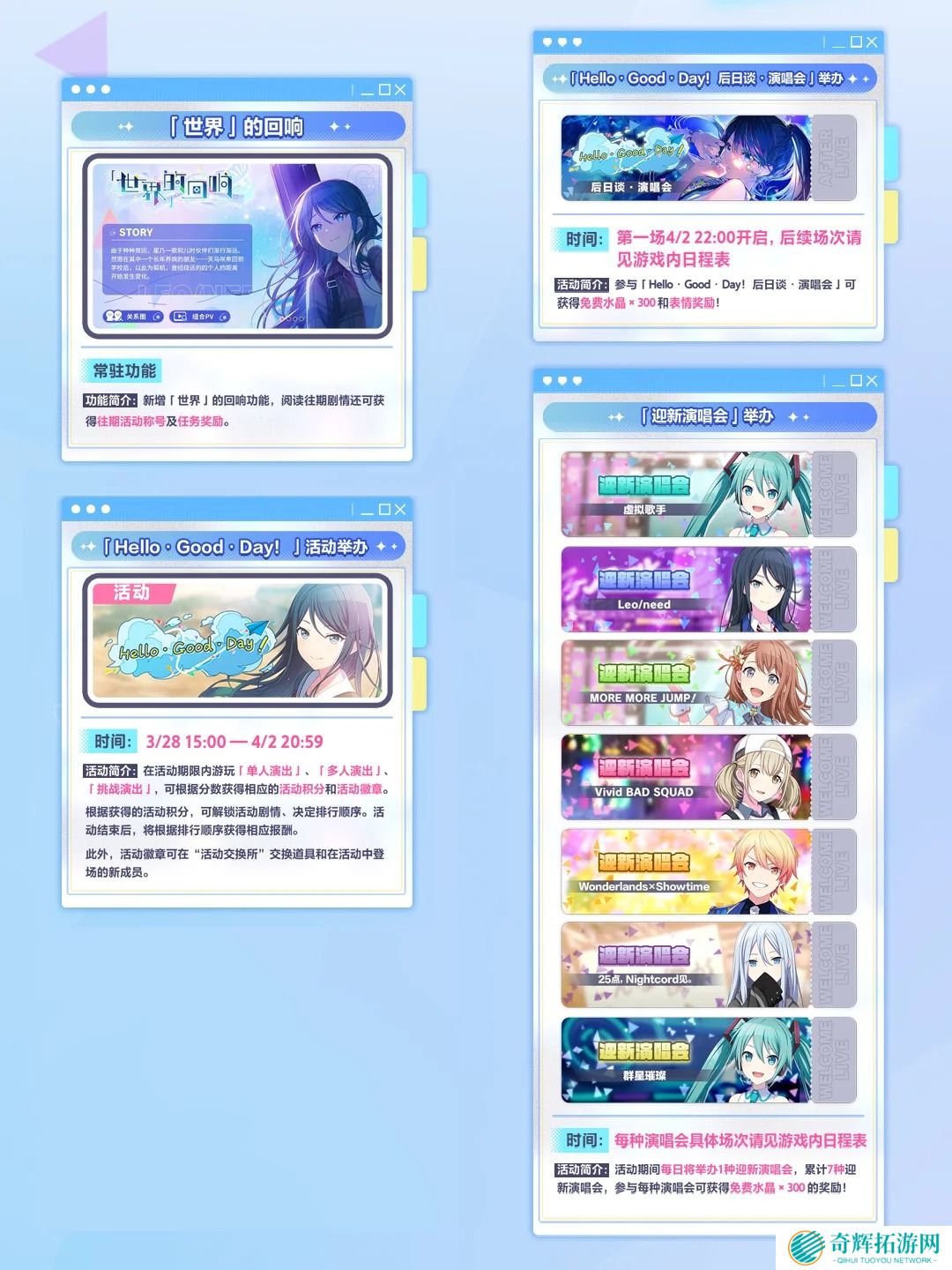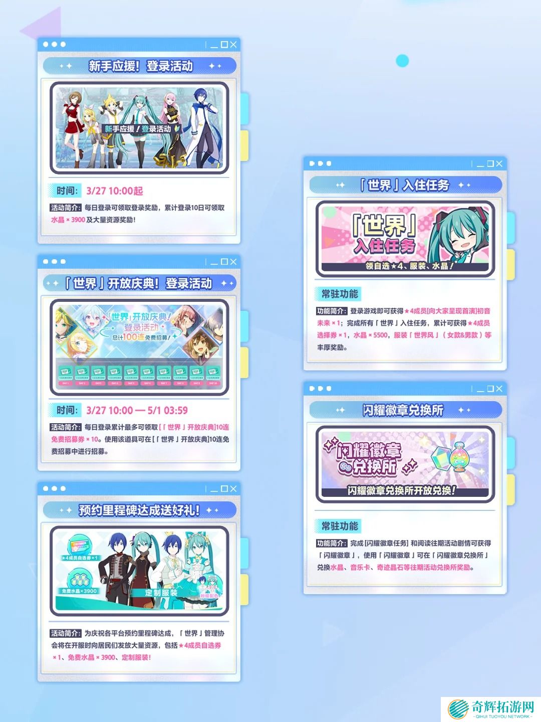 以上就是初音未来缤纷舞台公测的全部福利活动,机会难得,大家千万不要错过啦!赶快进入游戏领取你的专属奖励吧!