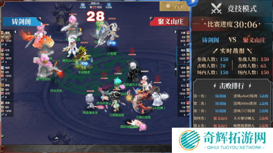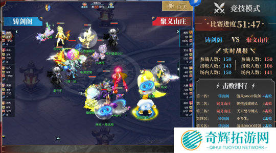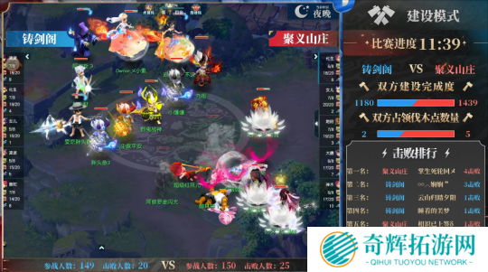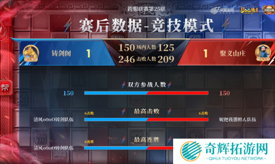 从赛后数据来看,【铸剑阁】与【聚义山庄】的总击败差距并不大,但由于弱势队伍被盯防,【聚义山庄】被对手拉开了较大的场内人数差距,最终遗憾落败。