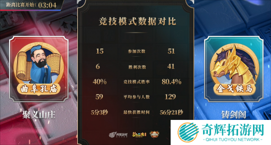 单从双方竞技模式的数据来看,【铸剑阁】的胜率比【聚义山庄】高了 40.4%。不过,【聚义山庄】此前的对手是【幻¢城】这样的顶级帮派,再加上服战队伍的加持,整体实力并不弱。