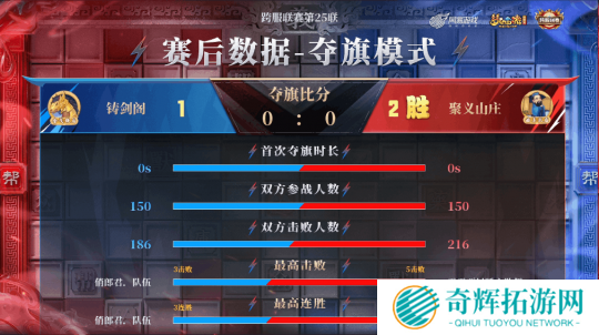 从赛后数据来看,【聚义山庄】的防守策略非常到位,他们在锁住【铸剑阁】夺旗队伍后,依托主力队伍逐渐拉开比赛差距,为最终的胜利奠定了坚实基础。