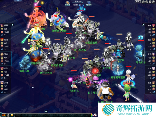 随后,【打字冠军】开始重点压制【德云皓子】花果山,使其无法进行有效输出的同时还确保了自身安全。比赛第35回合,【打字冠军】再度依靠九黎、东海渊灵宝,成功点掉【打字冠军】化生寺。这波点杀过后,【打字冠军】迅速拉出瞬法须弥清场,拿下勇武组群雄冠军。