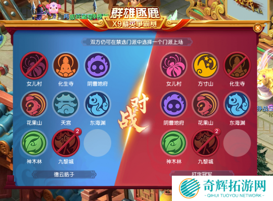 在禁选环节中,【德云皓子】被禁女儿、九黎,【打字冠军】被禁化生、九黎。单就禁选结果来看,双方均可以使用“点杀”体系,但由于【德云皓子】被禁女儿村,在阵容选择上有一定劣势。