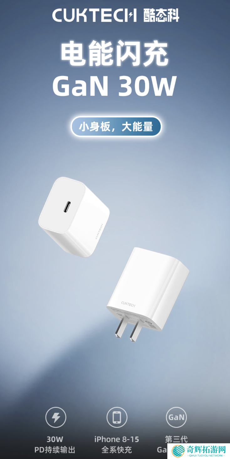 酷态科去年在京东上架一款30W USB-C充电头,支持PD快充,日常售价 26.9 元,首发价 25元。