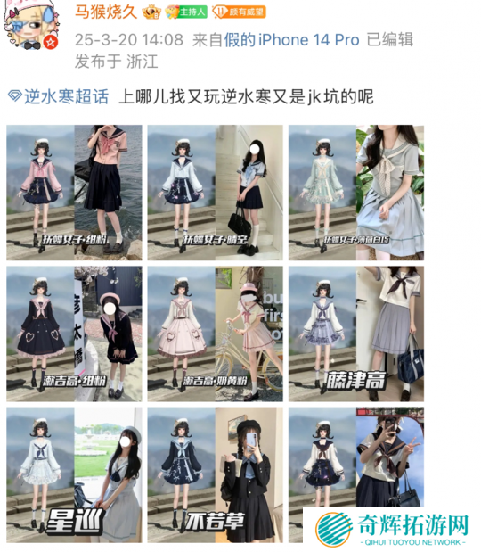 像是这位爱好JK和逆水寒的双坑玩家@马猴烧酒,直接九宫格开染,1:1复刻了JK圈中的热门款穿搭。在她的巧手下,航海时装风格千变,但无一例外地就是,每一款染色作品都很惊艳。要是穿上走在江湖街头,那回头率,估计得翻300%。