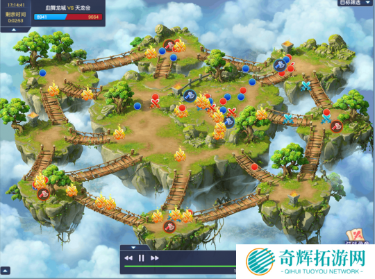 值得一提的是,【血舞龙城】对伐木点的争夺选择比较高明。比赛开场,他们刻意放弃了中间区域两个伐木点的争夺,而是和【天龙会】重点争夺周围的伐木点,这让【天龙会】的进攻路线被拉长,进攻成本变高。