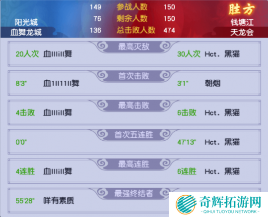 最终,在【天龙会】高压的“清人战术”下,【血舞龙城】输掉了竞技环节的比赛,【天龙会】2:0提前锁定冠军。
