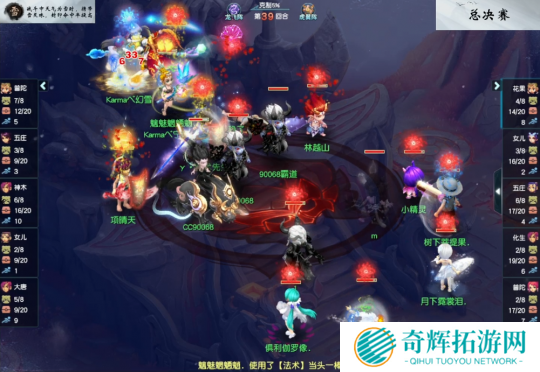比赛第39回合,紫禁城花果山再度发力,一波当头成功击杀夫子庙五庄观。此时此刻,除了夫子庙的普陀山,其他任务单位的血量都已处于危险状态。