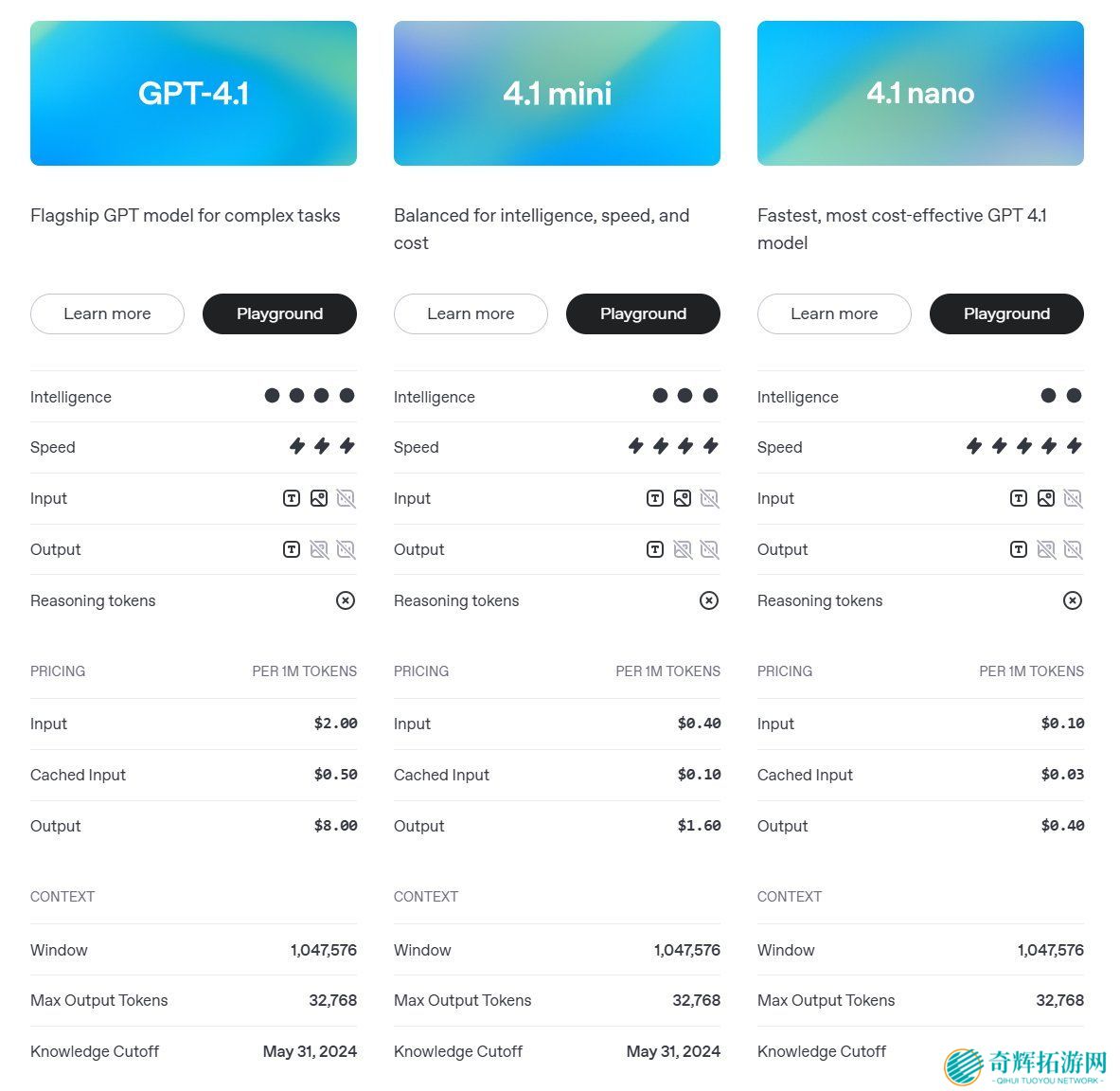 这些模型在编程、指令遵循和长文本理解方面全面超越前代 GPT-4o 及 GPT-4o mini,上下文窗口最高支持 100 万 tokens,知识更新至 2024 年 6 月。