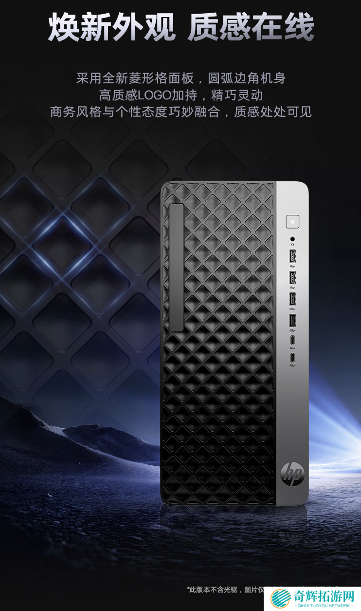 这款台式机整体造型商务,机箱正面采用菱形格撞色面板。官方未透露该机使用的主板具体信息,仅透露该机搭载 20 核 20 线程英特尔酷睿 Ultra 7-265 处理器,并匹配32GB DDR5 5600MHz RAM和1TB PCIe SSD,内置 500W 电源。