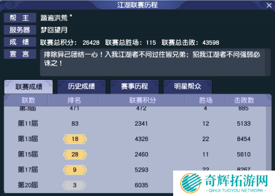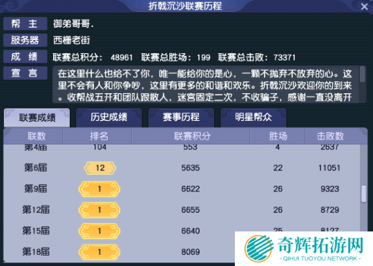 【折戟沉沙】作为西栅老街的老牌强帮,其历史战绩辉煌,他们不仅在帮派联赛中屡创佳绩,更是在第九联、第十二联、第十五联中实现了三连冠的壮举。该帮派在人员配置上相当均衡,拥有众多高战力玩家和经验丰富的指挥团队。他们擅长利用精准的战术布局和默契的团队配合,在关键时刻给予对手致命一击。此外,【折戟沉沙】在资源争夺和战场控制方面也有着独到的见解和执行力,这使得他们在多次关键战役中能够占据主动。