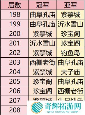 当然,如果209届武神坛之战产生了新的冠军和亚军,那么排在最末尾的黄鹤楼和避暑山庄将落入替补席。