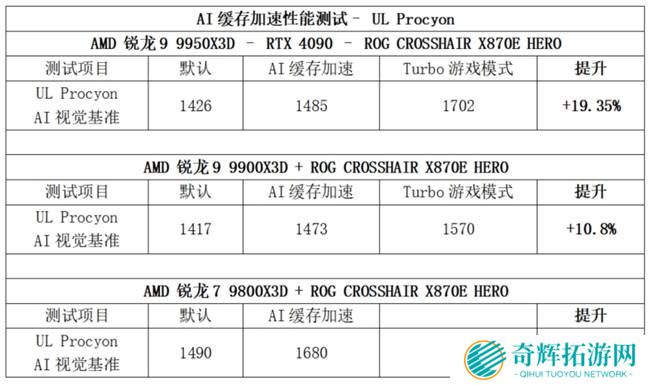 当同时启用AI缓存加速与Turbo游戏模式时,AMD锐龙9 9950X3D实现了19.85%的综合性能提升,刷新了基准测试纪录。这一结果充分展示了这两项功能在优化AI应用性能方面的巨大潜力。