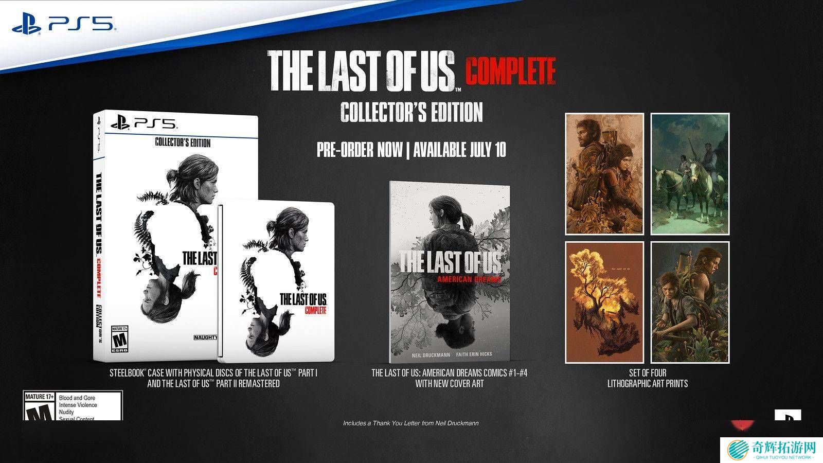 除了数字版外,顽皮狗还精心准备了实体版的《The Last of Us Complete: Collector’s Edition》,以满足收藏爱好者的需求。这款收藏版目前仅在direct.playstation.com独家预订,数量有限,预计将于7月10日发货,售价为110美元,折合人民币约809元。