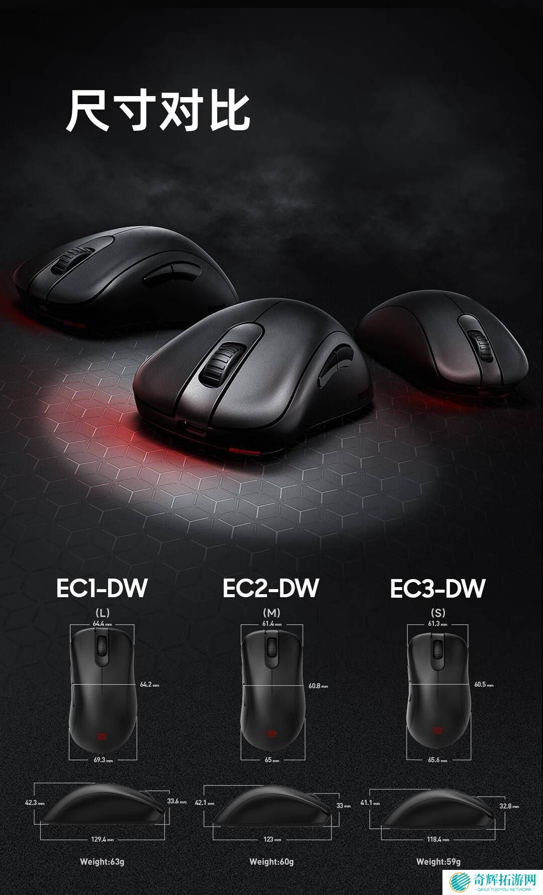 该系列鼠标中的EC2-DW中号版本已率先上市,售价为1079元。而面向大手用户的EC1-DW以及小手用户的EC3-DW,则定于本月22日下午4点正式发售。在硬件配置上,EC-DW系列也进行了全面升级。