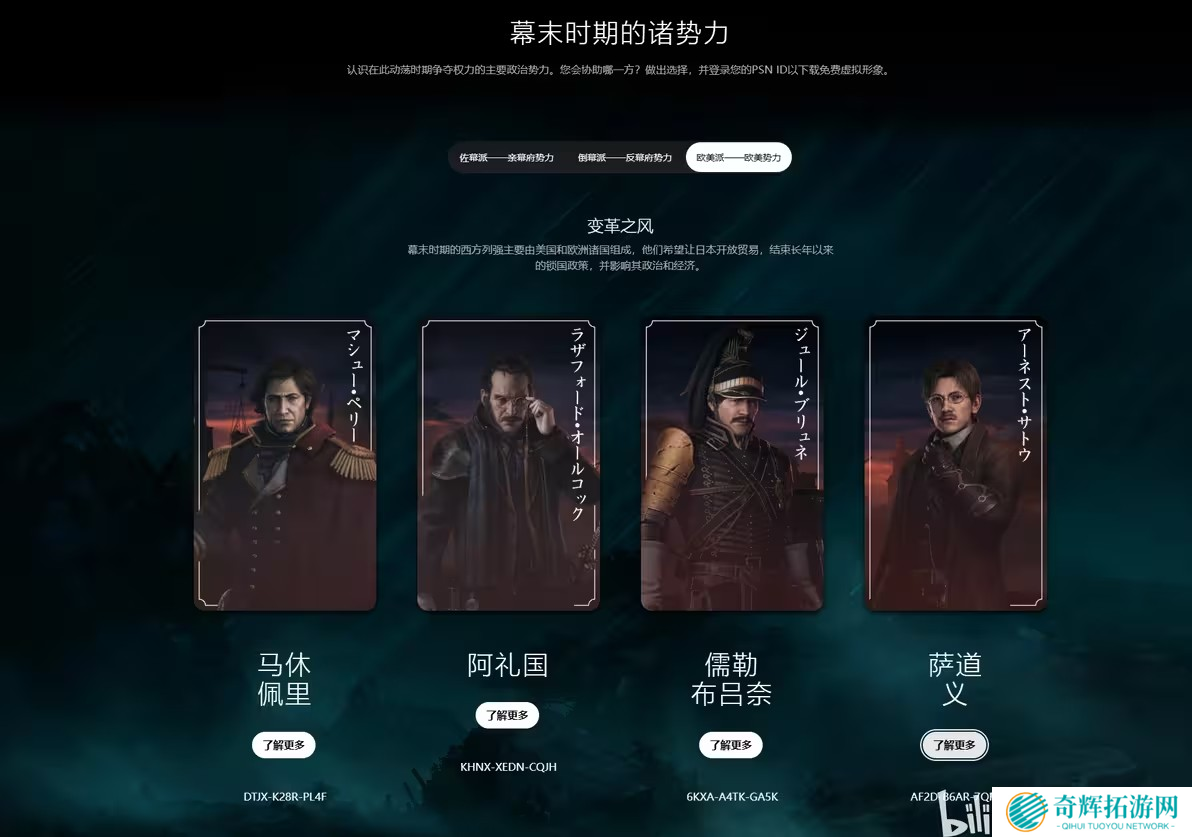 浪人崛起特别推出12款角色PSN头像供玩家免费兑换,包含幕末传奇人物坂本龙马、桂小五郎、胜海舟等。此外,还有多位历史名人和外国使节形象,快来领取你的专属头像吧!