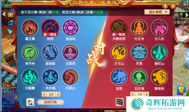 ban选情况,及时行乐ban掉了地府,而下沙扶贫则选择ban掉了DT,也就是在比赛中,双方均无法上地府和大唐门派。