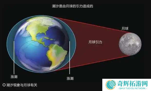2、月球对地球的引力会拉动海水,使得正对月球的海面形成“潮隆”(水位升高),这就是涨潮的关键。