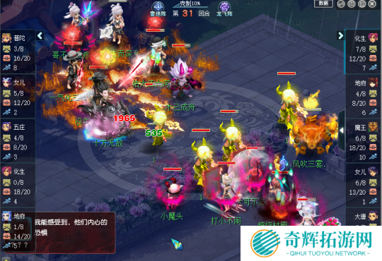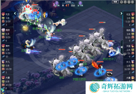 28回合,曲阜孔庙拉出攻谛听,终于首次成功点杀了钓鱼岛的魔王,但是钓鱼岛女儿可以使用相思寒针,曲阜孔庙并没有拿到优势,拉起女儿后只能加上天地同寿防止再被挂中小死亡。曲阜孔庙继续拉出更多的谛听,但是在钓鱼岛女儿的身似菩提之下,并没有打出效果。