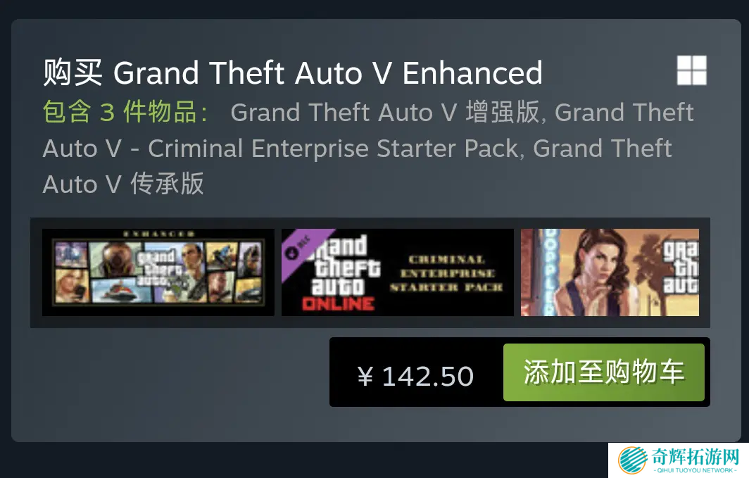 目前,《GTA5 增强版》已在Steam平台正式开售,售价详情如下:
