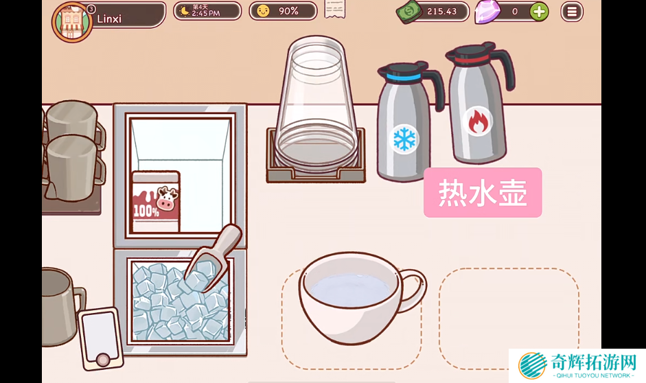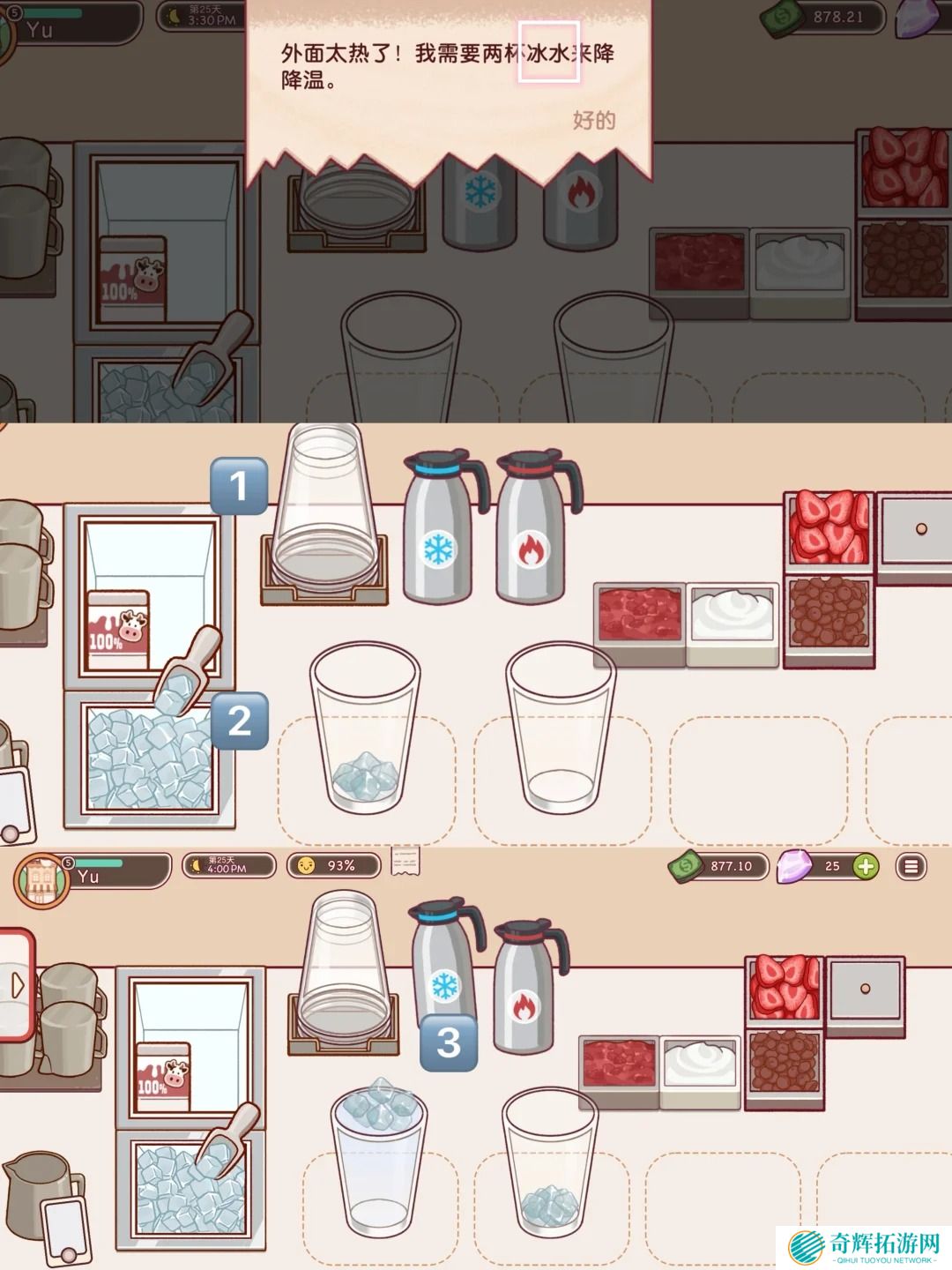随着店铺等级提升,你可以解锁更多高效的水源设备,比如更快的制冰机,让制作冰水变得更方便!