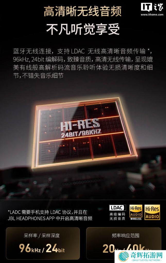 新款耳机采用蓝牙无线连接,支持 LDAC 无线高清晰音频传输,可实现 96kHz / 24bit 编解码、20Hz / 40kHz 频率响应范围。
